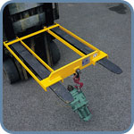 The Adjustable Fork Mounted Hook is a simple attachment that allows a load to be slung under the forks anywhere along the length. The Hook is held in place by screw downs which clamp onto the fork blades. The lightweight design makes it easy for one person to fit.